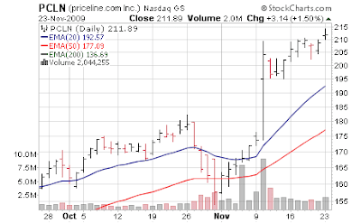 5) Selling all but 1 share of Priceline.com (PCLN) - the stock is approaching 100% gain since our original purchase. This is one of 2 stocks we never reacquired a large stake after taking profits in the summer. It's not a huge part of the portfolio but let's "lock it in".