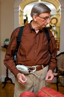 For patients, living with an LVAD presents a host of unique challenges. For one, Heartmate II doesn't create a pulse; instead, it pumps blood though the body in a continuous flow. That means the pulse of a patient's own heart can be hard to detect and it makes blood pressure difficult to measure. Some medical experts are concerned that a lack of a strong pulse could result in damage to the brain, kidneys and other organs. So far, those potential side effects haven't materialized, but doctors want to see how patients fare on the devices over several years. - LVAD patients wear a vest that holds two battery packs, which must be replaced and recharged every four to five hours. They wear a controller on their belt that is connected to the implanted LVAD through a conduit that pierces the skin and requires daily dressing changes. At night, they plug the device into the wall to keep it powered while they sleep. Electric utility companies, ambulance squads and hospital ERs typically need to know about LVAD patients in their towns to be able to respond effectively in case of power failures or medical emergencies.