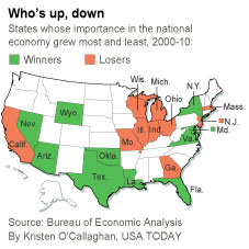 - The dramatic realignment of the nation's economy was illustrated by North Carolina, Virginia and Georgia all overtaking one-time industrial powerhouse Michigan in economic size from 2000 to 2010. The economic winners of the last decade are states that focus on raw materials, government and senior citizens. The big losers are places that make things — industrial states and even California.