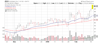 ... because if they make new highs, they would be poised to act like the stocks below, which I consider the strongest charts. Many of these barely appear to have been hit by the correction ... here are some of the best of the best, from quite disparate sectors. I have not listed most of them below but we have some of the best charts in consumer non discretionary - especially basic food stocks like Sara Lee (SLE) or Tyson Foods (TSN) of all things! There are quite a few others - what that action is "telling us" is beyond me, other than Americans are hungry.