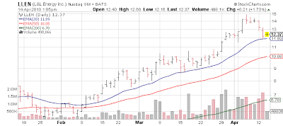 Not that valuation matters as people are now chasing retailers and industrials at 40x+ earnings, but as as of last quarter, for the first 9 months of its fiscal year 2010 the company has 77 cents diluted EPS and 82 cents basic.  In the last quarter they posted mid 30 cents of EPS so figuring they can do something similar in Q4, that takes them to about $1.10 in yearly EPS.  At a $12.30ish stock price its about a 12 PE ratio which is ok for a commodity stock.  I don't think investors particularly care about valuations right now... as long as momentum holds, they will pay any price for any stock right now.  That said, LLEN is not particularly expensive.
