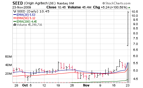 Speculation week is off to a roaring start, to wit please see Chinese seed company Origin Agritech (SEED) which always is a place daytraders congregate when agriculture stocks are in favor....