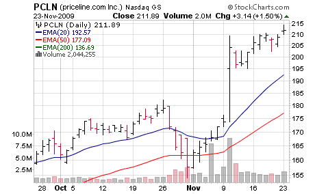 5) Selling all but 1 share of Priceline.com (PCLN) - the stock is approaching 100% gain since our original purchase. This is one of 2 stocks we never reacquired a large stake after taking profits in the summer. It's not a huge part of the portfolio but let's "lock it in".