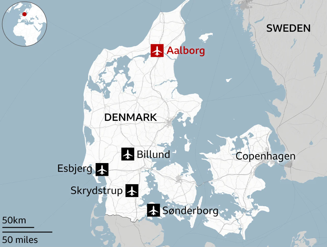Prime Minister Mette Frederiksen described the incidents in Denmark as "the most serious attack on Danish critical infrastructure in recent memory." Danish authorities have suspended civilian drone flights nationwide to protect airports, energy sites, and military bases.