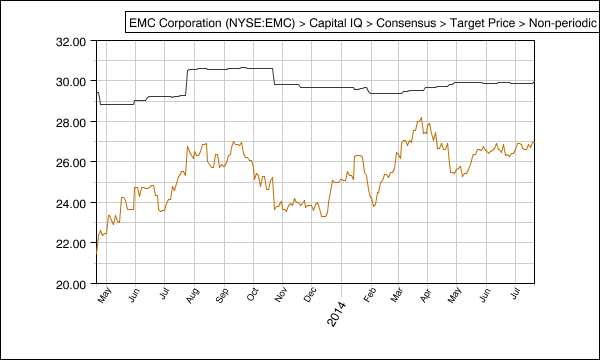 Analyst Estimates and EMC Stock Price - Source: Capital IQ Data