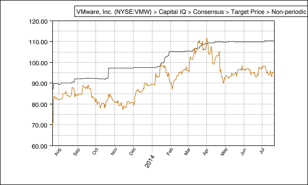 Analyst Estimates and VMW Stock Price - Source: Capital IQ Data