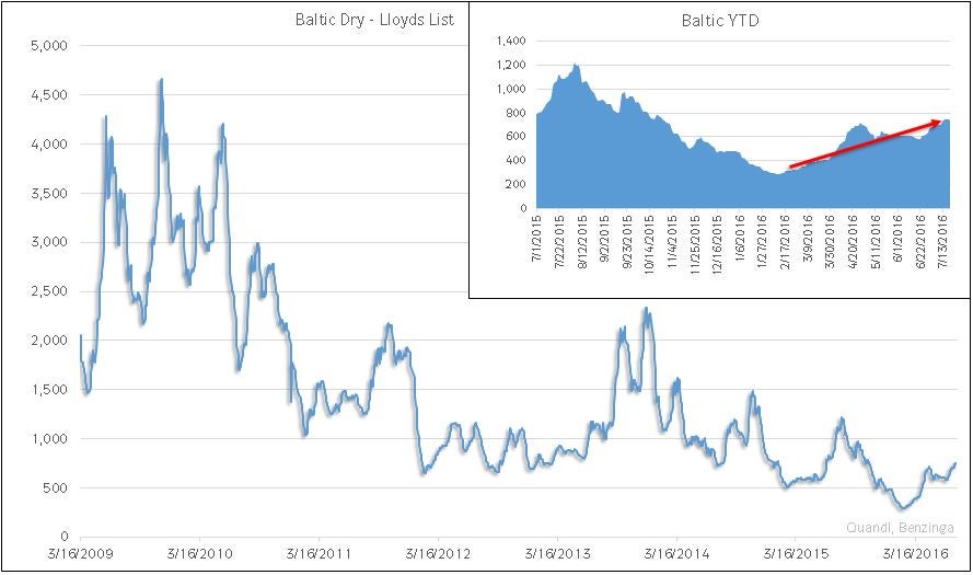 Shipping names are rebounding strong Thursday morning, as Diana Shipping Inc. (NYSE: DSX) is up over 4 percent, Teekay Tankers Ltd. (NYSE: TNK) added 1.75 percent, Frontline Ltd. (NYSE: FRO) is up about 2.75 percent and Euronav NV (NYSE: EURN) is up over 3.35 percent. However, the broadly followed The Guggenheim Shipping ETF (NYSE: SEA) has declined 6 percent since the beginning of 2016.