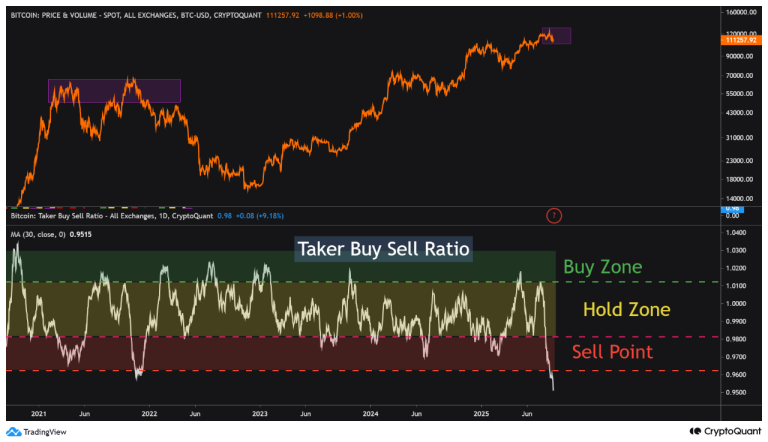 Analysts Warn of BTC Pullback With Taker Buy/Sell Ratio Flashing Sell Signal
