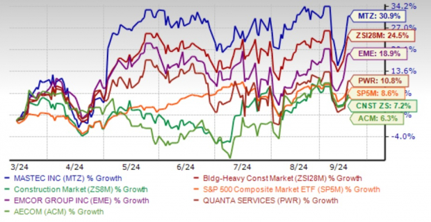MasTec, Inc.'s (NYSE:MTZ) stock has gained nearly 31% in the past six months, outperforming the Zacks Building Products - Heavy Construction industry's 24.5% growth, the broader Construction sector's 7.2% increase and the S&P 500 index's 8.6% rise.