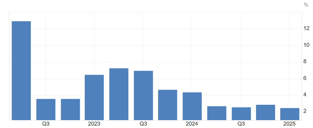 Economic growth slowed to 2.5% year-over-year in Q2 2025, marking the weakest pace since the COVID-19 pandemic. Inflation, high unemployment, and structural inefficiencies have weighed on its GDP.