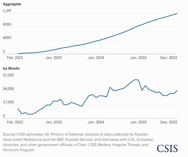 "No major power has suffered anywhere near these numbers of casualties or fatalities since World War II," CSIS said of Russia.